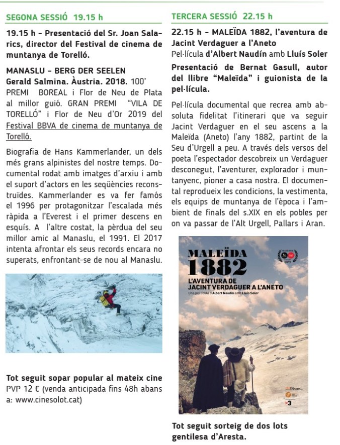* Venda tiquets al web de cinemes Olot, des d’una setmana abans fins a 24 hores. Si prefereixes un menú adaptat (vegetarià, vegà, …) compra el tiquet i envia’ns un mail a info@vivimmuntanyes.cat